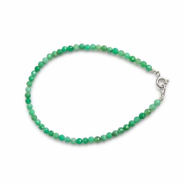 Kamienie chryzoprazu w kształcie kulek o szlifie fasetowym 3mm. Długość bransoletki 18 cm, zapięcie srebrne.