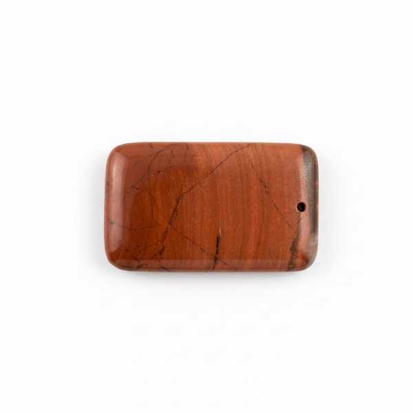 Polerowana płytka z jaspisu o wymiarach 3x5 cm, z otworem.