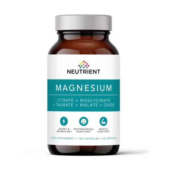 Neutrient Magnesium – 5 form magnezu z 4 bioChelatami i tlenkiem dla ochrony jelit. 120 kapsułek na 1 do 2 miesięcy równowagi i energii.